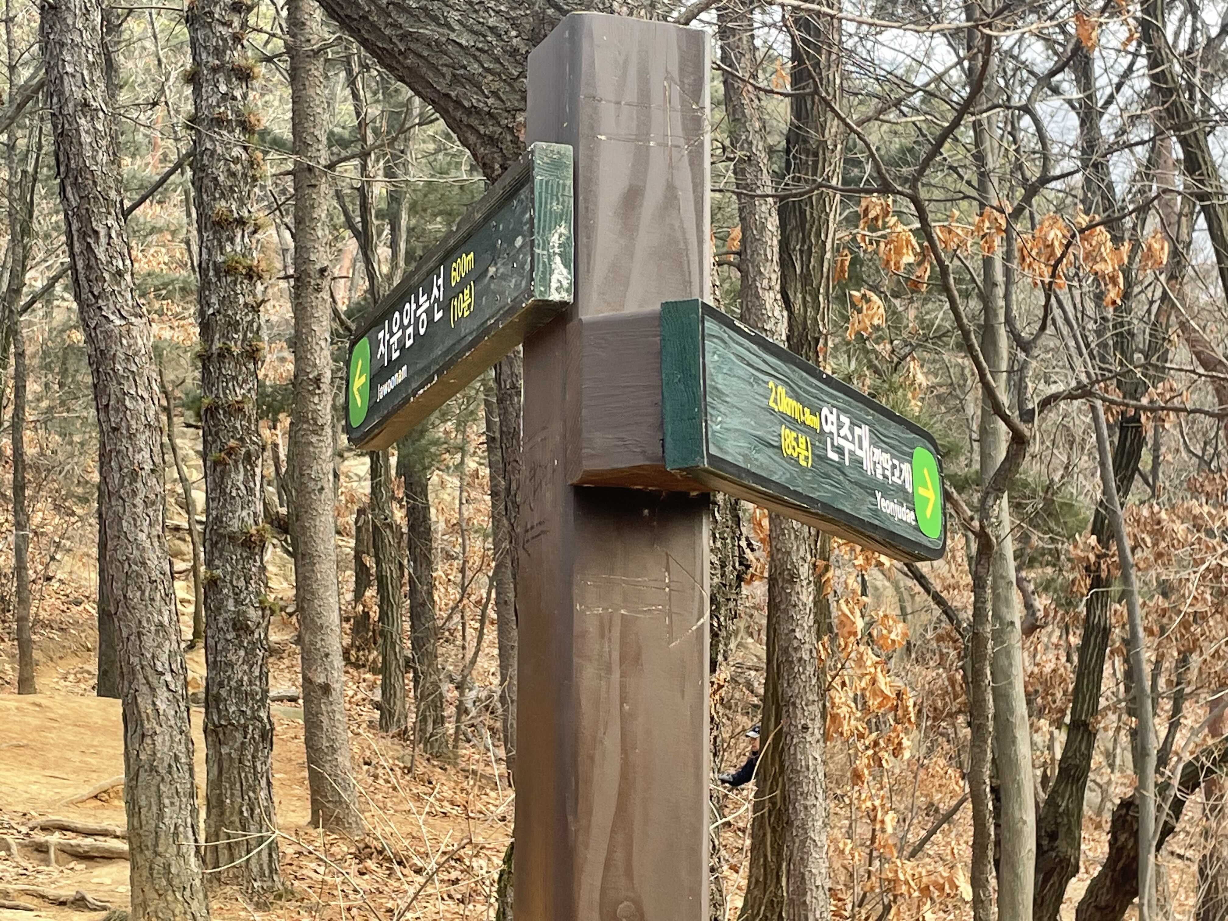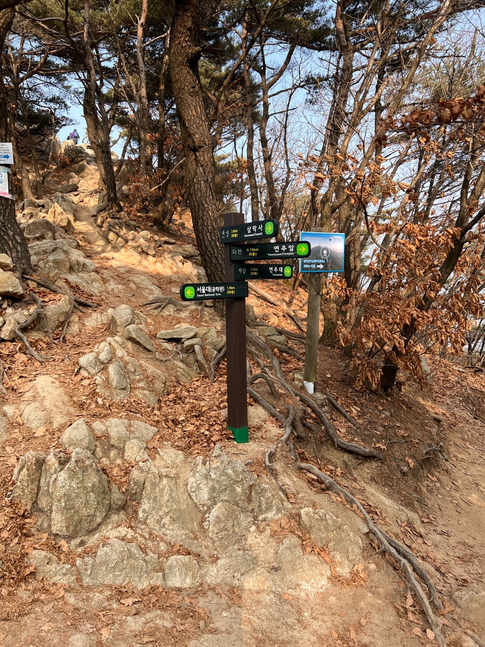 연주대가 얼마 안남았음을 알리는 표지판입니다ㅎㅎ 이때 정말 정신력으로 올랐던 것 같아요ㅎㅎ 이미 내 다리는 내것이 아닌 것 같고 너무 힘들어서 머리는 아프고ㅎㅎ 체력이 아니라 정신력으로 올랐습니다.
