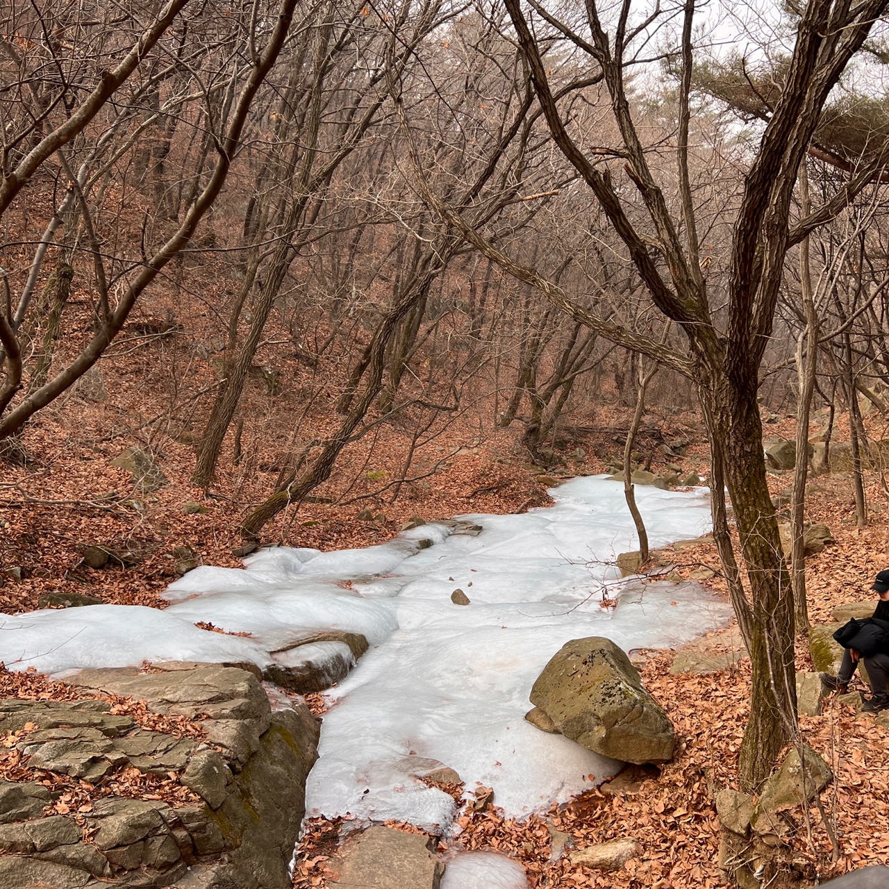 확실히 산이라 그런지 곧곧에 눈이 얼어있더라구요! 자연의 풍경을 오랜만에 보니, 기분이 좋아졌습니다.
