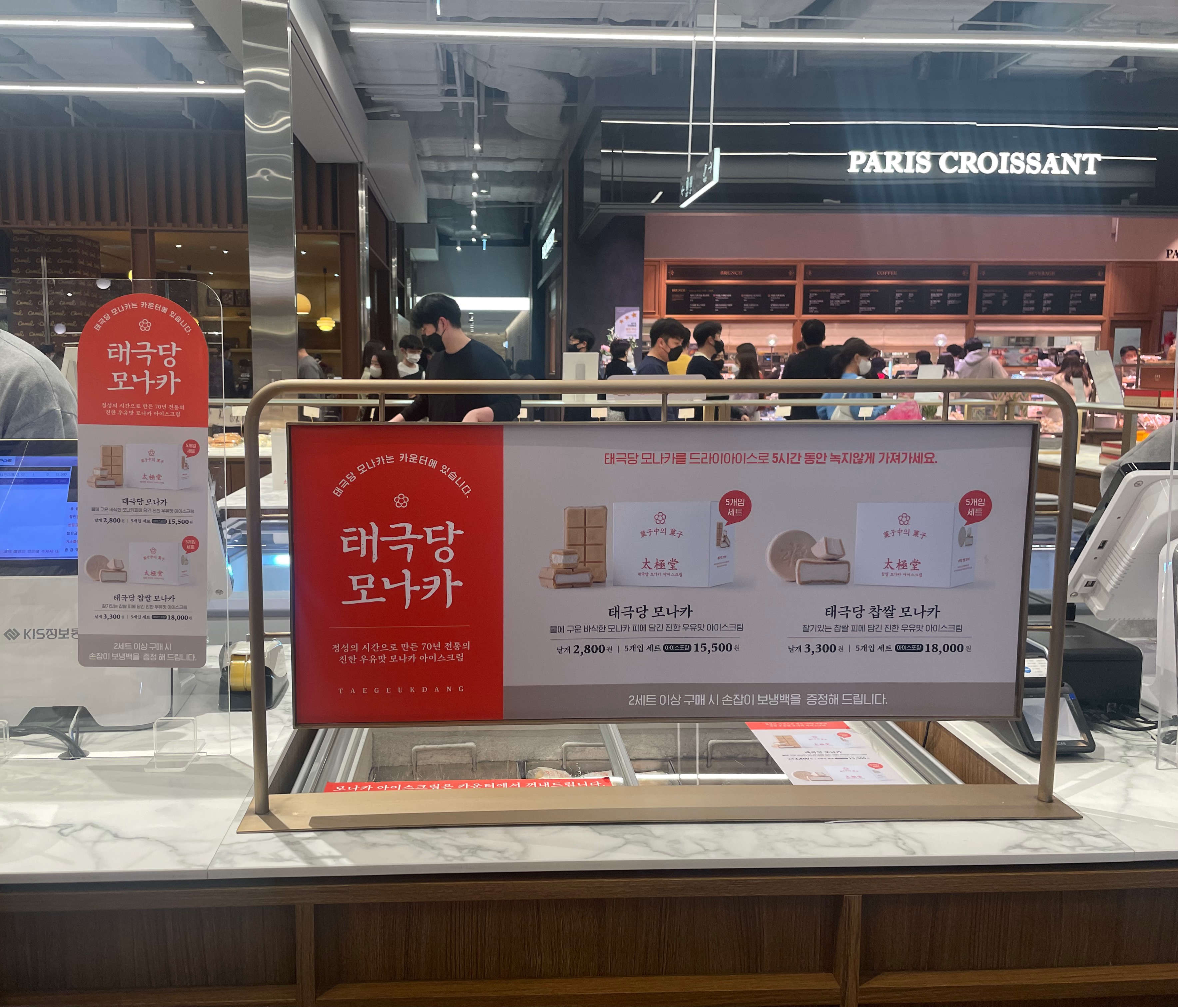 태극당의 시그니처라고 할 수 있는 모나카 아이스크림의 가격은 2,800원입니다! 자극적인 맛은 없지만 담백고 깔끔한 맛이 특징인데요! 그래서 이렇게 인기가 많은가봐요ㅋㅋ 세트로도 팔더라구요!